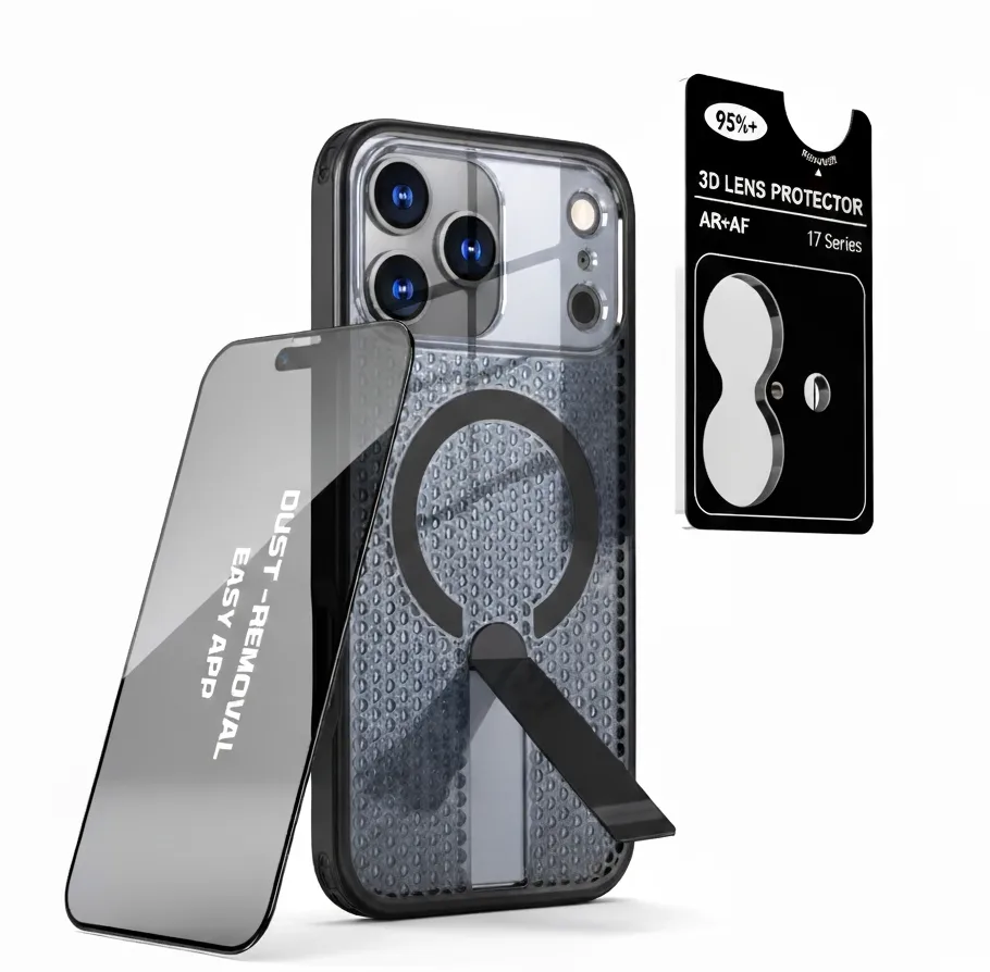 Protect your iPhone 17 with the ultimate combo: Screen Protector + Lens Protector + Magnetic Case – all perfectly matched for your model and color.
